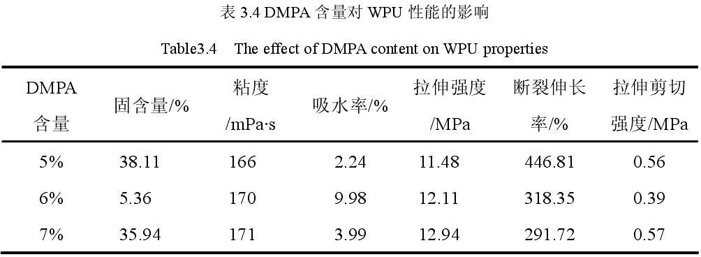 DMPA含量對水性聚氨酯膠粘劑性能的影響
