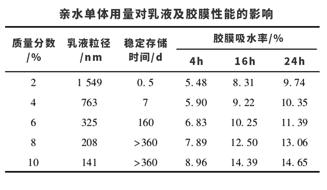 親水單體用量對玻纖處理乳液及其膠膜吸水性的影響